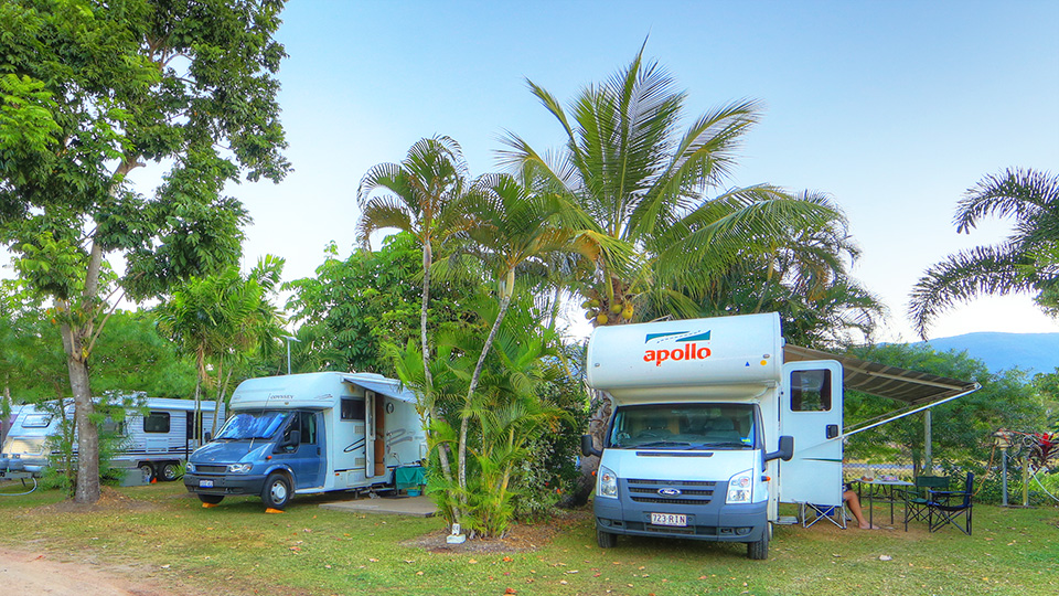 Our powered sites are ideal for travellers who want both convenience and a touch of tropical charm. Whether stopping overnight or settling in for a longer stay, our spacious sites are a combination of slab and grassed spaces with lush tropical shady trees, perfect for caravans, campervans, motorhomes and camper trailers.